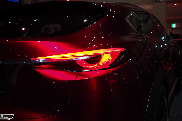 Koero這款車除了往水箱罩延伸的LED導光日行燈看來特別明顯外,其車體大小和設計可發現應屬於略大於CX-5一級的款式,所以未來量產後稱為CX-7應該是不意外。除此之外,從前保桿、水箱罩,到車側線條都可以發現保留著濃濃CX系列的身影,但精緻度有更為提升,故作為Mazda旗下SUV的老大哥應該不為過。