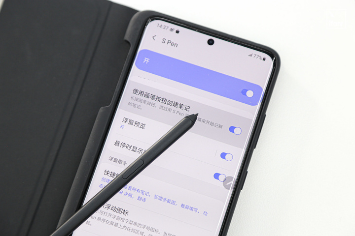 但 Note 系列還是保持了許多關於 S-Pen 的獨有特色,因為 S21 Ultra 5G 支持這跟 S-Pen 並不支持藍牙,無法與手機進行配對,自然也就無無法實現隔空操作,筆上按鈕目前的唯一作用就是當橡皮擦使用。