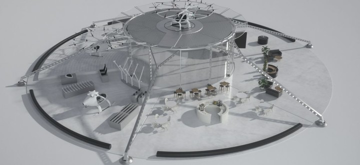 材料輕便和模塊化設計,讓這種靈活多變的航空港能輕鬆進行轉移。它可能出現在市中心的路上,也可能出現在高樓的平台上,還可能出現在在廣闊的大海上,與船配合進行協作。因此,它還是災難應急管理的理想場所。