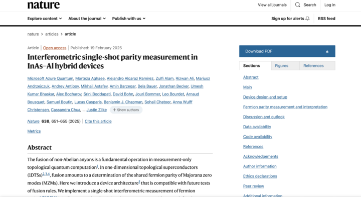 Majorana 1 芯片推出的同一天,相關研究論文也在《Nature》上發表。