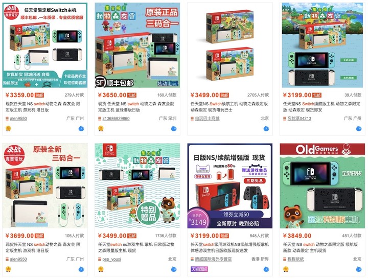 淘寶的情況也差不多。如果你以「Switch」為關鍵字進行搜索,大部分店家都會給出 3100-3500 元左右的定價;如果是動森限定機這類熱門款式,更是能開價 4000 元。