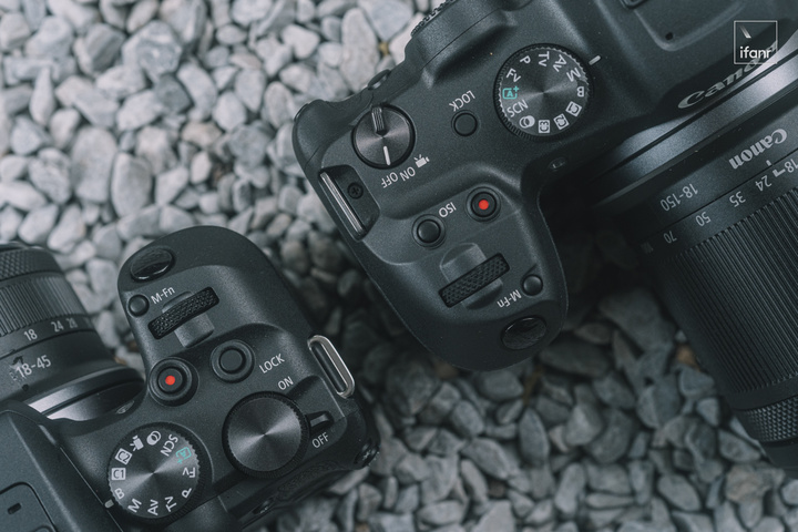 可能是出於定位和對應用户羣的考慮,EOS R7 會比 EOS R10 多一個獨立 ISO 控制按鈕,同時也取消了甚少使用的自帶閃光燈。