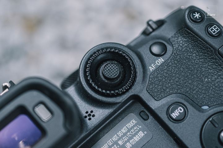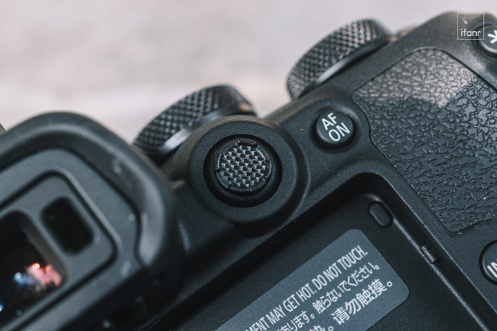 EOS R7 的後撥盤也採用了縱向放置的設計,撥盤中間就安裝了可以快速切換對焦點的撥杆。