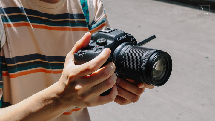 首先,兩款相機的握持手柄都做得比較厚,而且基本上都比之前推出的其他同級別無反相機要厚,厚了握持感就會有所提升。像我這種手比較大的胖子,拿着 EOS R7 就很穩定的安全感。