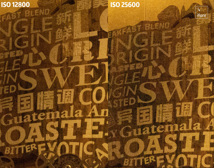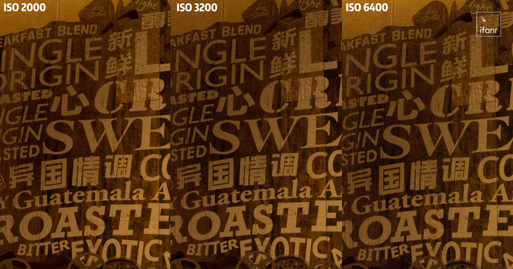 ISO 表現的話,EOS R7 表現也是目前 APS-C 相機的常規標準,ISO 在 3200 的位置還是可用,木板上的文字還能夠保持清晰,但木板細節開始丟失了。提升到 6400 之後,字體也開始模糊。