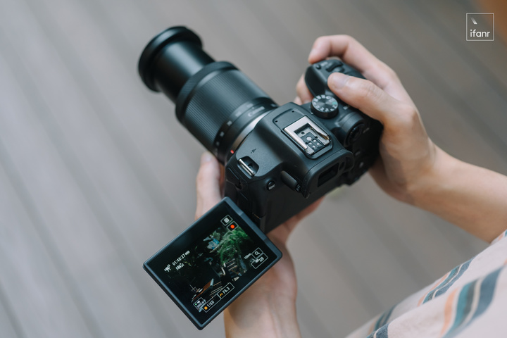兩款相機都加入了佳能最熟悉的側翻屏設計,EOS R7 用的是 162 萬點旋轉背屏,EOS R10 用的是 104 萬點背屏,屏幕能夠翻到前面就可以進行自拍取景。