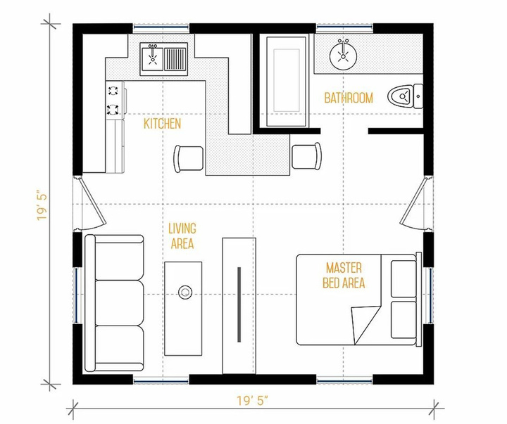 正如名字所暗示那樣,Casita 房屋小巧而精緻,是一個包含了卧室、廚房、浴室和用餐四個區域的方形空間。