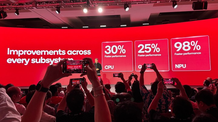 關於第三代驍龍 8 的性能細節,高通將在第二日的演講中展現,不過首日演講當中也透露了一些。比如相比於上代驍龍 8,第三代驍龍 8 的 CPU 性能提升了 30%,GPU 性能提升了 25%,NPU 性能提升了 98%。