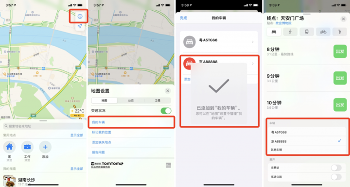 8. 蘋果地圖能夠綁定車牌號在蘋果地圖裏,你可以提前設置車牌號了。