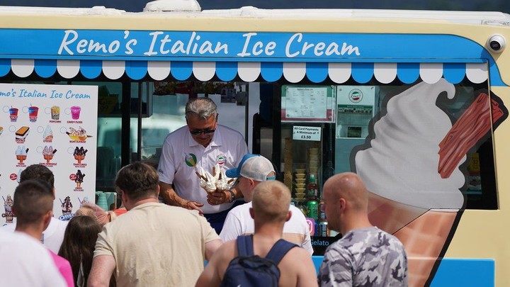 在英國政府首次發佈的「紅色極端高温警告」之下,人們在週一和週二居家辦公,僅在必要時使用公共交通,氣温預計週三才會下降。