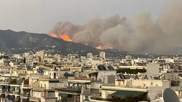 由於森林大火,希臘當局已指示雅典東部彭特利附近四個地區的人們撤離,在雅典東部可以看到濃煙和火焰。