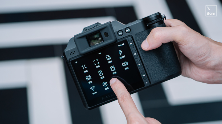 屏幕觸感跟手,順滑程度基本是現在的智能手機的水平。菜單模式和手機啓動器的模式相似,都是以直觀的圖標和文字形式放在界面上,搭配觸摸操作的直觀操作,第一次用哈蘇相機的用户都可以快速上手。習慣之後操作之後再按照自己的拍攝模式調整自定義按鍵,那就能進一步提升拍攝效率。