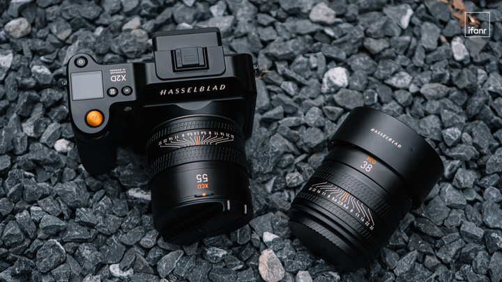 我們手上的是 XCD 2.5/55V 和 XCD 2.5/38V,兩款鏡頭都是 72mm 的濾鏡口徑,裝上 X2D 100C 後顯出新系統整齊劃一的緊湊感。