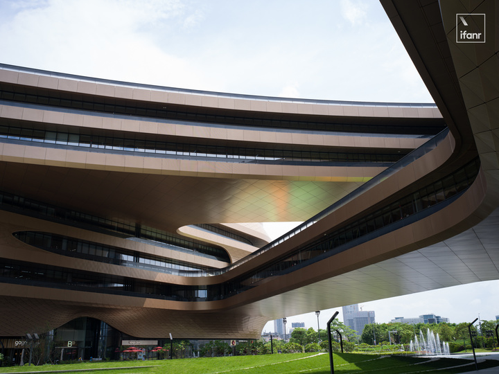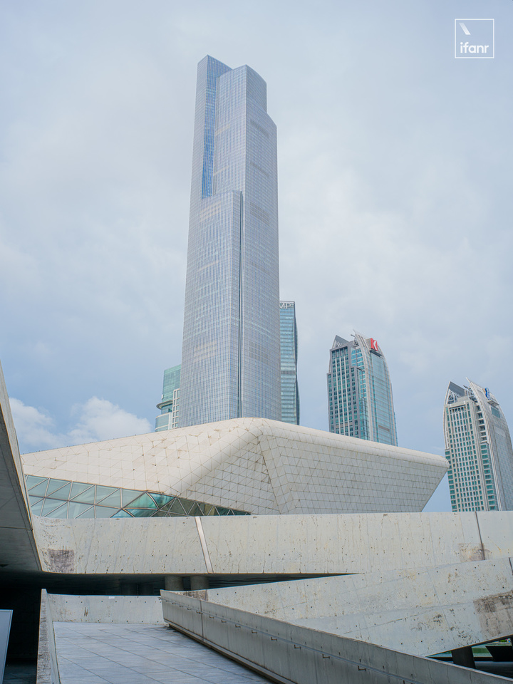 而且在一億像素的拍攝中,多次裁切和放大的都沒有壓力。看着放大到 100% 的玻璃幕牆,窗與窗之間的線條依舊清楚,大劇院牆體外的痕跡還是清晰可見。