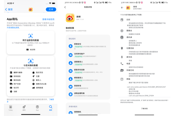 ▲ 從左至右 App Store、小米商店、Google Play,雖然都有標註權限獲取情況,但 App Store 一目瞭然,其他則「太長不看」。