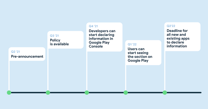 在 Flurry 公佈這個數據的同時,Google 也在開發者 Blog 中表示將會跟隨 iOS 14.5 的 ATT 功能,為 Android 系統推出「隱私標籤」的功能,不過這個功能正式上線最快也要到 2022 年第二季度。