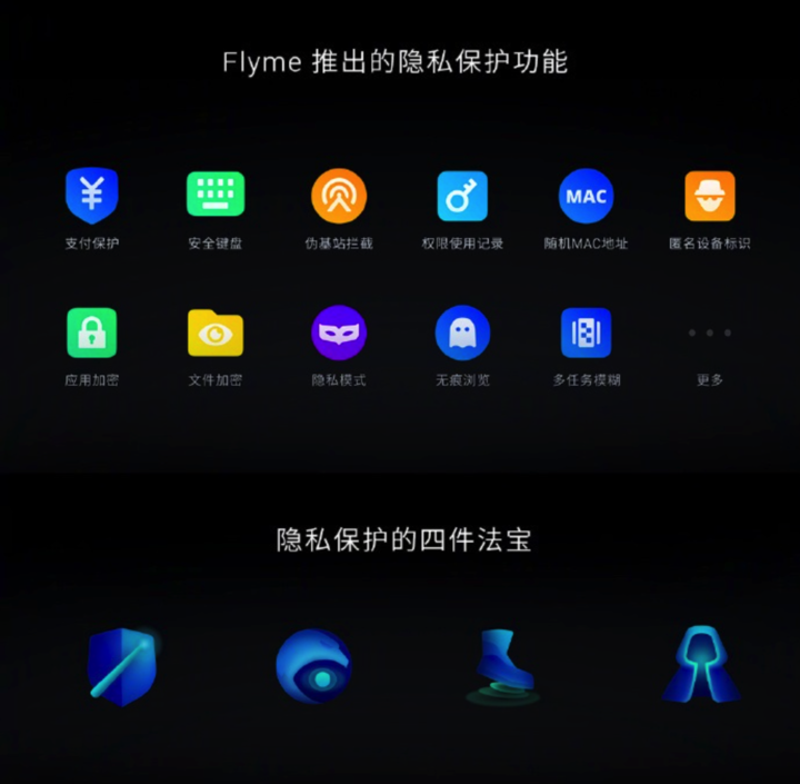 而「小而美」的 Flyme 9,在發佈會上也着重強調了保護「隱私」的新措施。同樣是分為面向 App 和整個系統層面的兩大部分。