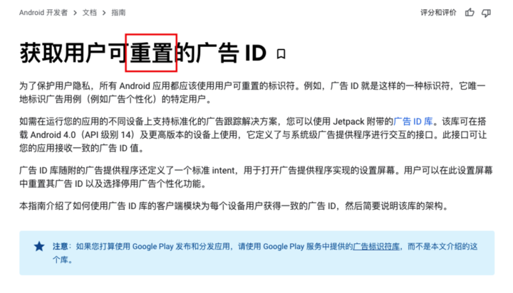 在 Play 管理中心幫助頁面上,Google 也強調廣告服務商只能跟蹤這種可重置的廣告 ID,並沒有權限訪問設備的永久、唯一標識符(也就是諸如 IMEI 碼等),如若違規,廣告商將會獲得「電子郵件警告」。