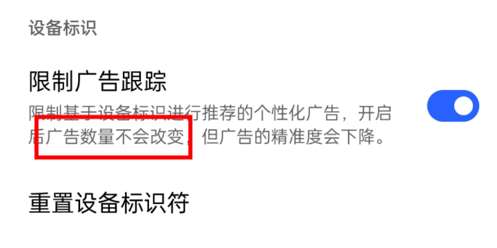 即使在以簡約著稱的氫 OS 中,也有可重置的廣告 ID 開關,用户可以「選擇停用廣告個性化功能」,而這個功能實則是 Google 平衡廣告個性化和用户隱私數據。