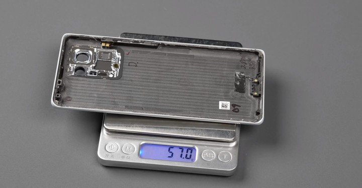 而小米 MIX4 這次宣稱採用了新的輕量工藝,減重了 30%,從拆機的結構來看,可能是用塑料代替了部分陶瓷形成了複合結構。