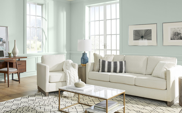 本傑明·摩爾(Benjamin Moore)的 2022 年度色是「平秋薄霧」,柔軟可愛的鼠尾草綠,沉靜但又不拘一格,可以輕鬆融入各種設計: