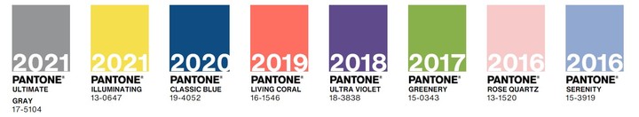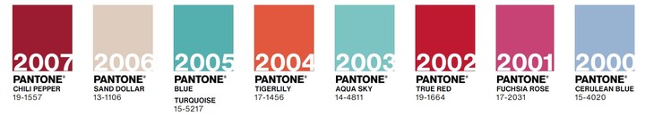▲ 歷屆年度流行色. 圖片來自:Pantone