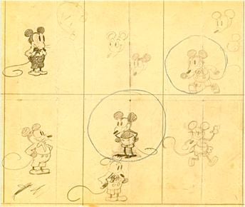 ▲ 1928 年初米老鼠的設計草圖. 圖片來自:wikipedia