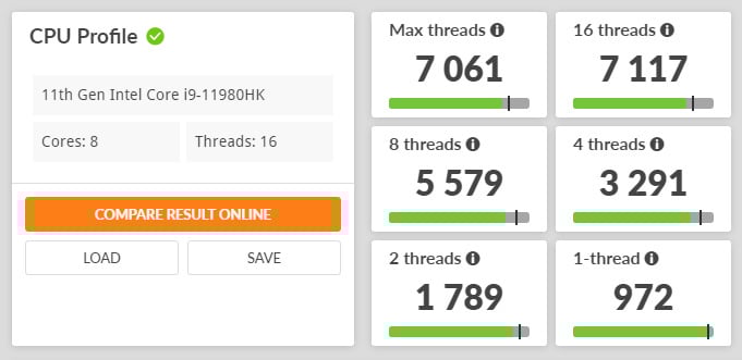 ▲ i9-11980HK 3DMARK CPU Profile 得分