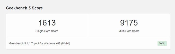 在 Geekbench 5 測試中,微星 GE76 這塊 i9-11980HK 單核得分 1613,多核得分 9175,表現相當不錯。測試環境依舊是室温 24 攝氏度,電腦處於性能模式。
