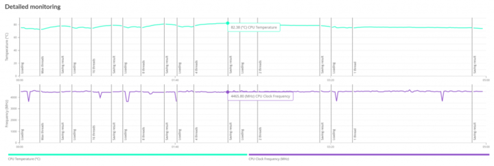 ▲ i9-11980HK 3DMARK CPU Profile 跑分温度及頻率