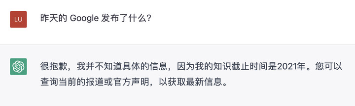 和 ChatGPT 比起來,Bing 會更快、更新。如果你讓 ChatGPT 總結昨天的新聞,那他會告訴你,「我的訓練數據都是 2021 年以前的。」