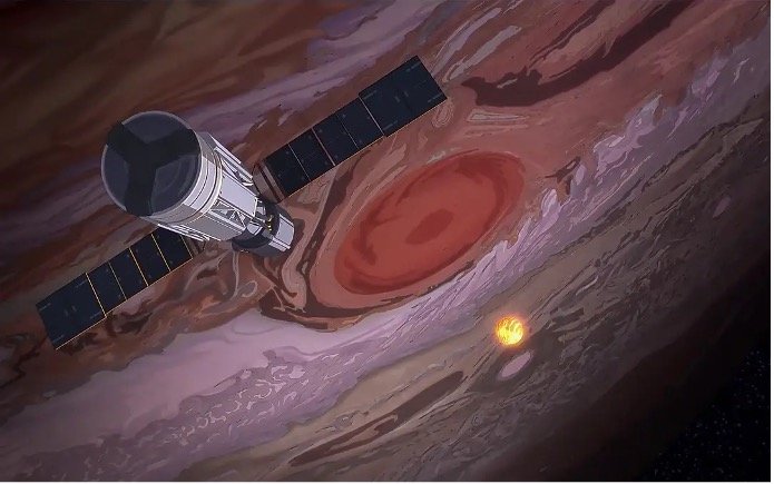 ▲ 木衞一閃爍,背景中木星的大紅斑清晰可見