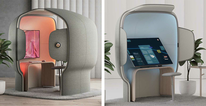 微軟的 Flowspace Pod 的出現,完全打破了工作艙的常態,因此得到了紅點獎官方的高度評價——「Flowspace Pod 是新常態的願景,是在高度協作的混合辦公中專注和深入工作的避難所,獨自工作時間將變得更加寶貴。」
