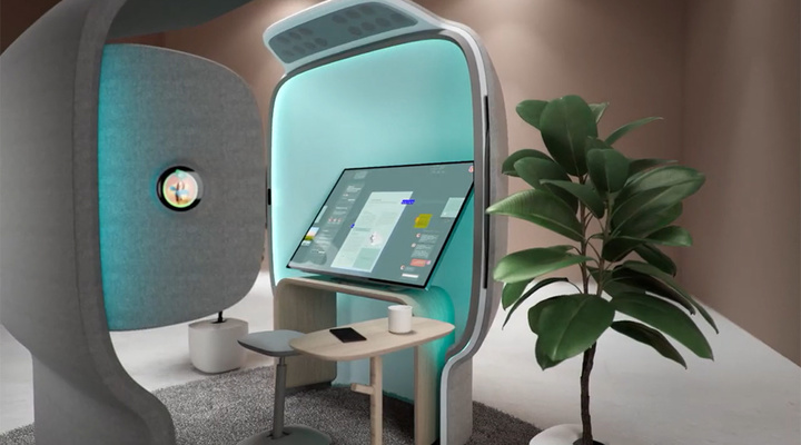 它還是微軟辦公構想團隊的作品,命名為 Flowspace Pods(流動空間艙)。生產電腦的品牌去做辦公空間,微軟的 Flowspace Pods 並不是獨一無二的。