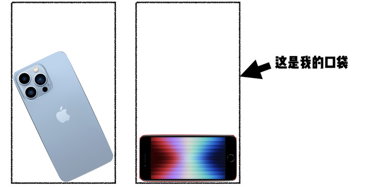 ▲ 上為 iPhone SE,下為 iPhone 13 Pro