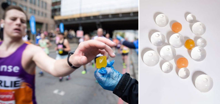 前年倫敦舉辦的半程馬拉松上,運動員半途直接吃一種名為「Ooho」的「水球膠囊」,因為包裝不是塑料,而是用海藻和植物成分做成。