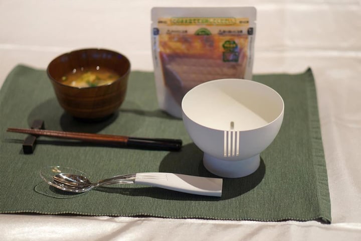 在後來的展示中,這套餐具拿來吃其他食物也能津津有味,例如蔬菜通心粉。
