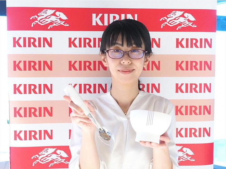 ▲ 麒麟集團該項目的主要負責人佐藤愛手持電鹽餐具. 圖片來自:mynavi