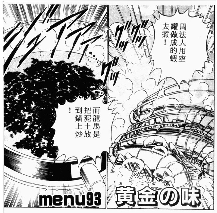 於是,「電菜」和「土菜」成為廚師法人和龍馬拿來對決的菜餚作品。雖然最終勝出的是用泥土炮製出來的「土菜」,但是裝有電池的金屬蝦做出的「電菜」也同樣成為了網絡上被讀者心心念唸的名菜。