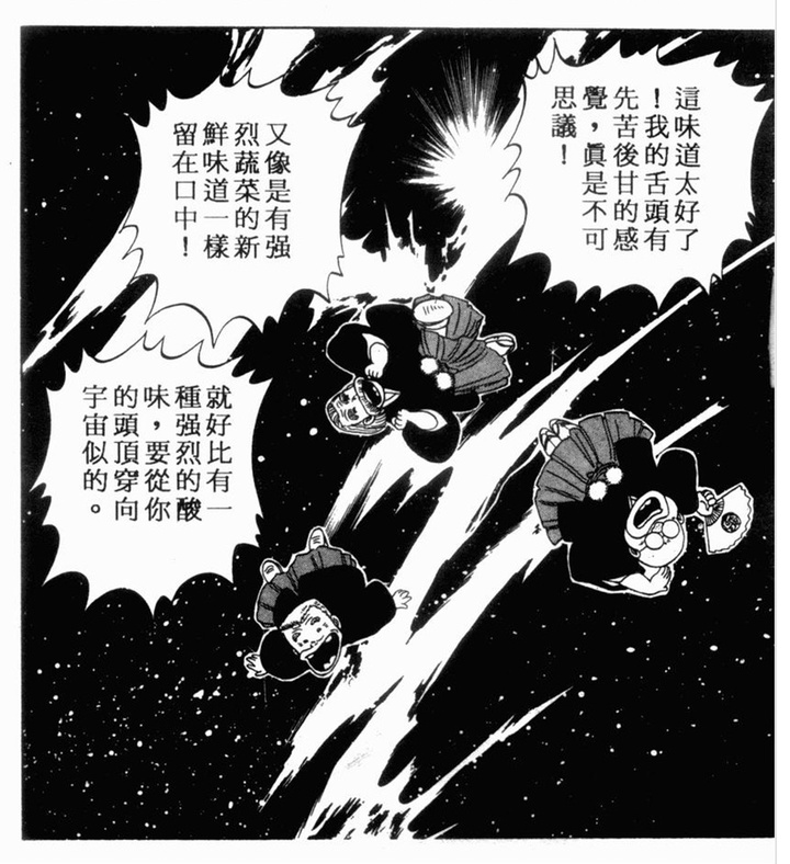 引用這味道太好了!我的舌頭有先苦後甘的感覺,真是不可思議!又像是強烈蔬菜的新鮮味道一樣留在口中!就好比有一種強烈的酸味,要從你的頭頂傳向宇宙似的。