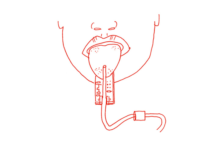 2020 年,宮下博士發明一個可以舔舐的味覺合成器,由五個溶解電解質製成的凝膠塊來分別複製五種最基本的味道——甜、鹹、酸、苦和鮮味。