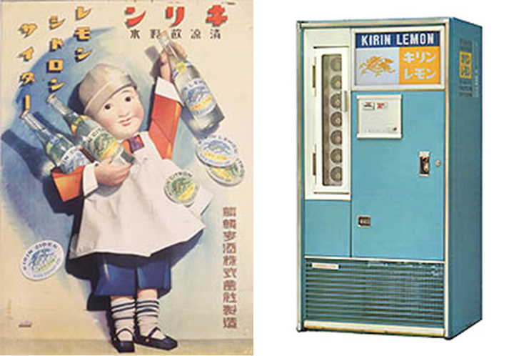 1928 年之後,麒麟用當時市面上並未出現的半透明玻璃瓶,推出了檸檬汽水,自此進軍飲料市場。1963 年,麒麟成立自動售貨機服務公司,這也是麒麟飲料有限公司的前身。