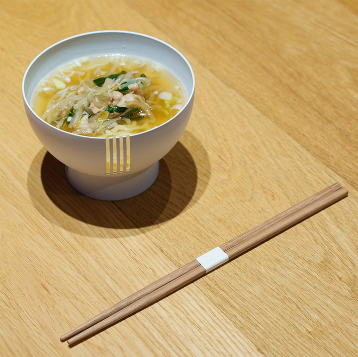 因為此前麒麟公司做過一份調查,發現日本人最無法忍受減低鹹度的食物的第一名是拉麪,第二名是味噌湯。高腳碗、勺子和筷子恰恰是這兩種食物常用的餐具。