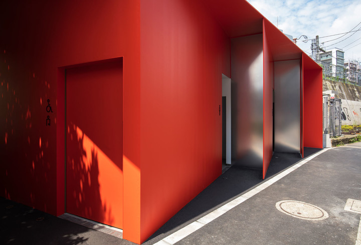 廁所位於惠比壽車站旁狹長的三角區域,儘管空間不大,但田村奈穂紅色很好利用了這個地形特點。