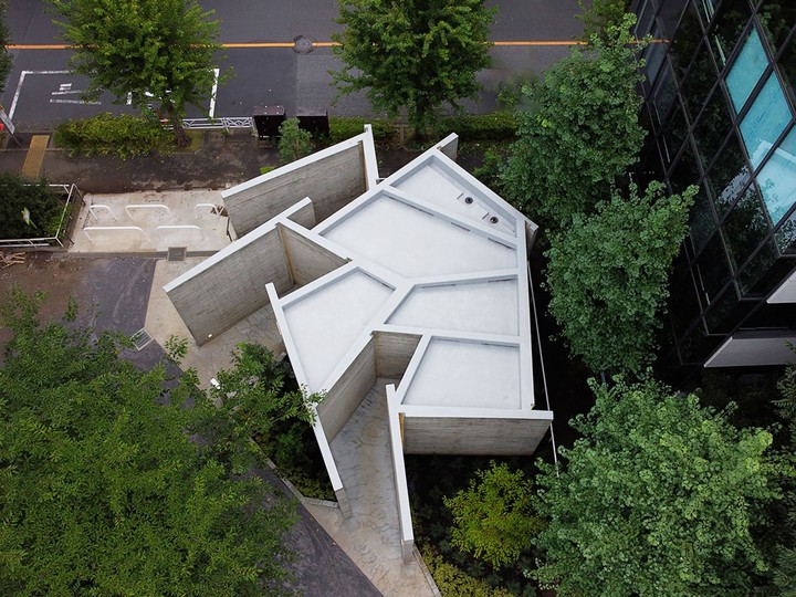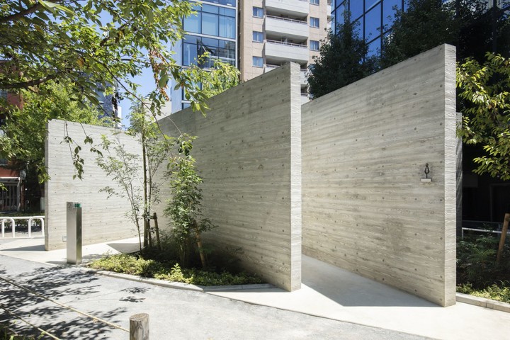 借鑑了「川屋」的概念,這座公廁將 15 面混凝土牆隨機排列組合,間隔出宛若迷宮的三個獨立空間,不同方向都有着出入口。