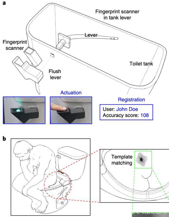 在這之前,其實研究團隊已經制作了可以讀取指紋的沖洗杆,但是這種方法並非萬無一失,杆子誰都握來握去,還增加了識別步驟,不夠自動化,所以他們瞄準了肛門。