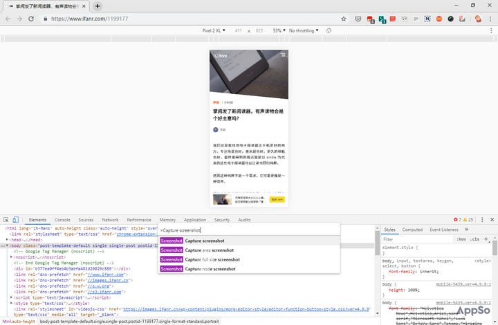 網頁長截圖。輸入命令 Capture full size screenshot 實現整張網頁長截圖,Chrome 會自動將整個網頁內容截取並保存至本地電腦,整個截取速度和效果上都有着不錯的表現。