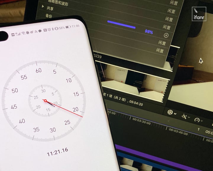 後來我將一段 5 分鐘 4K 視頻導入兩台電腦,要求加入 5 分鐘字幕並轉變為 1080P 分辨率、30fps,最後 MacBook Air 用了 11 分 42 秒完成導出,而 16 英寸 MacBook Pro 僅用了 1 分 22 秒。