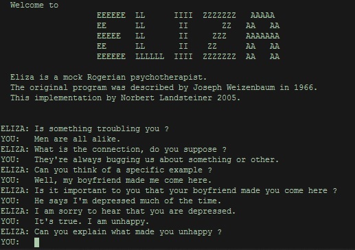 Weizenbaum 的初衷是展示計算機對人類語言的理解有多麼膚淺,但讓他意外的是,人們依然對 ELIZA 着迷,把自己關在房間幾個小時,就為了和它説悄悄話。之後,對計算機程序產生的擬人化依戀,被稱為 ELIZA 效應。