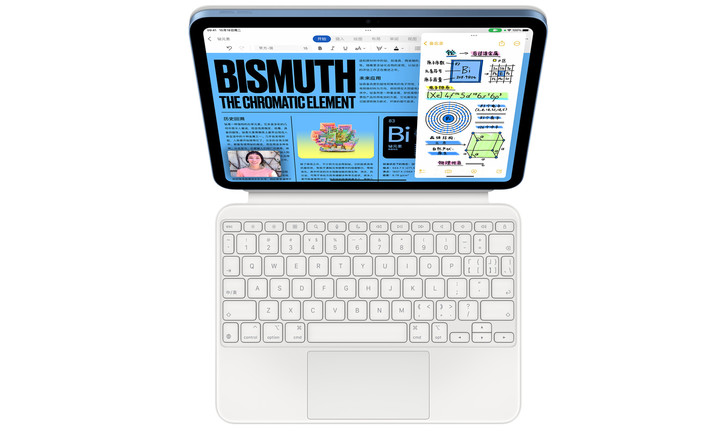 配件上,蘋果為 iPad 10 配備了一款全新的妙控鍵盤式鍵盤,擁有鍵盤和一個觸控板,這也是蘋果首次為 iPad 配備一款生產力爆棚的配件。